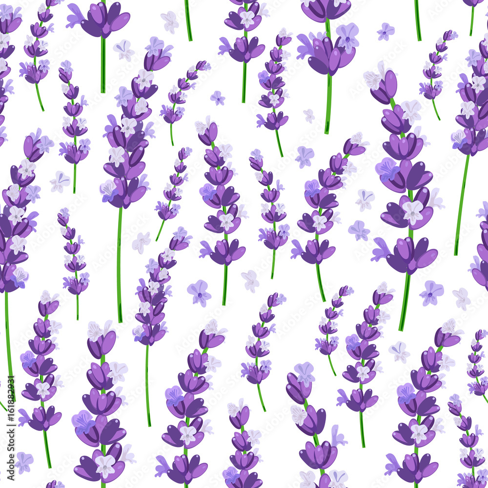 Fototapeta Seamless pattern of provence violet lavender flowers on a white background