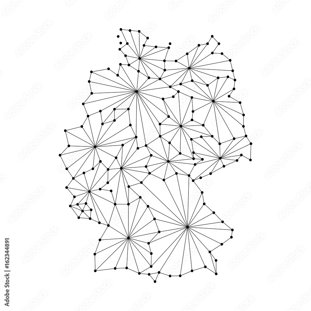 Fototapeta Germany map of polygonal mosaic lines, rays and dots vector illustration