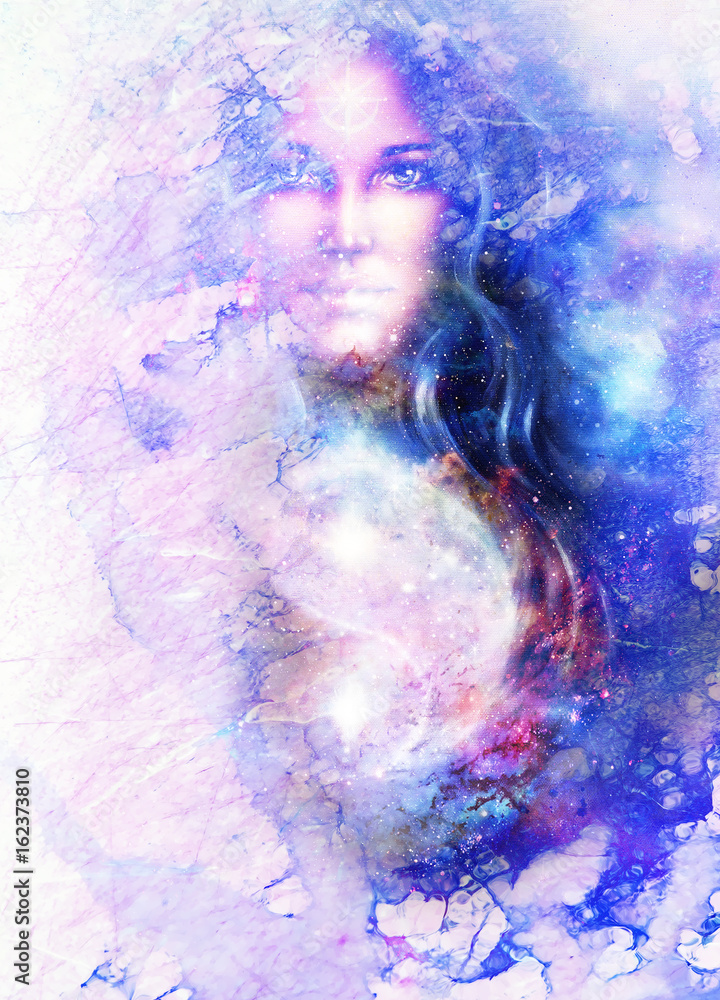 Fototapeta goddess woman and symbol Yin Yang in cosmic space