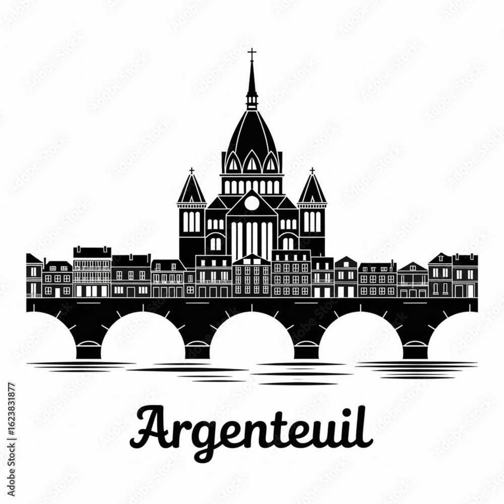 Fototapeta Argenteuil Skyline Silhouette - Suburban French City Vector Illustration in Blac