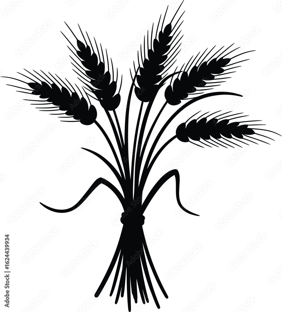 Fototapeta Black wheat sheaf silhouette harvest agriculture organic