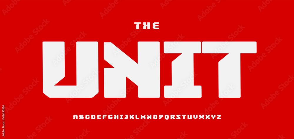 Fototapeta Geometric alphabet, bold cutout font, futuristic sport typeface for gym, soccer team shirt, tech industry headline, esport logo