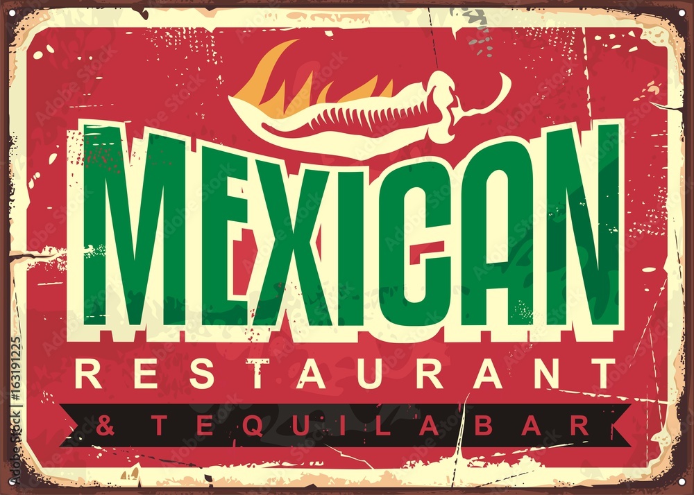 Fototapeta Mexican restaurant and tequila bar, old vintage sign concept with text message a