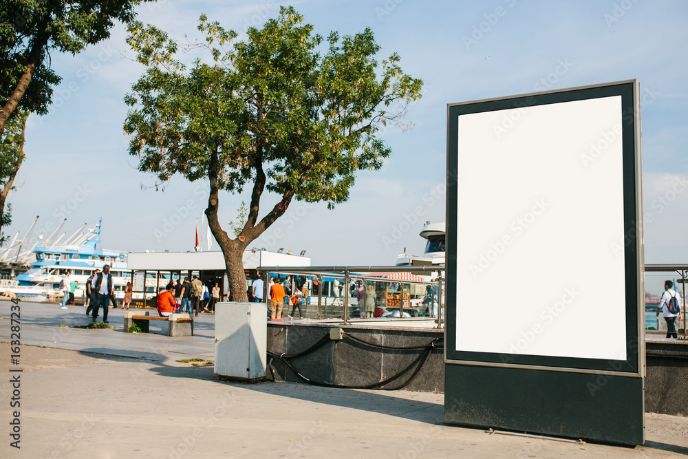 Fototapeta An empty billboard for advertising on the street near the seaport in Istanbul, Turkey