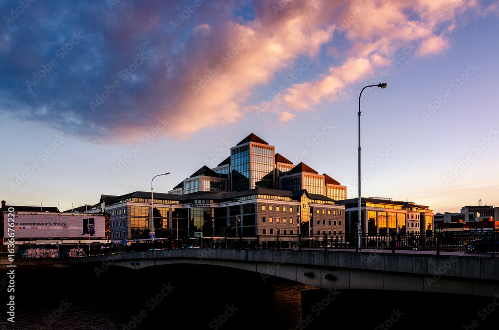 Fototapeta Evening View of Dublin's Financial District and River Liffey