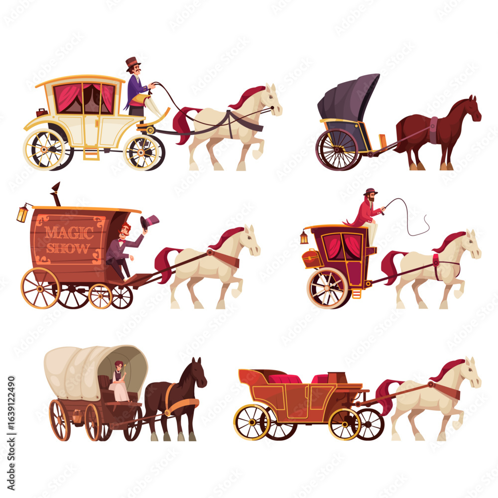 Fototapeta A collection of vintage horse-drawn carriages and historical coaches