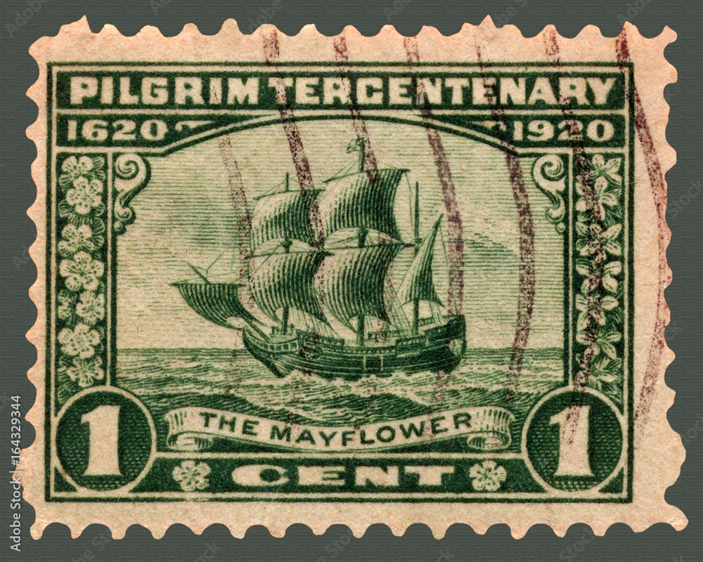 Fototapeta Pilgrim Tricentenary Postage Stamp with Mayflower