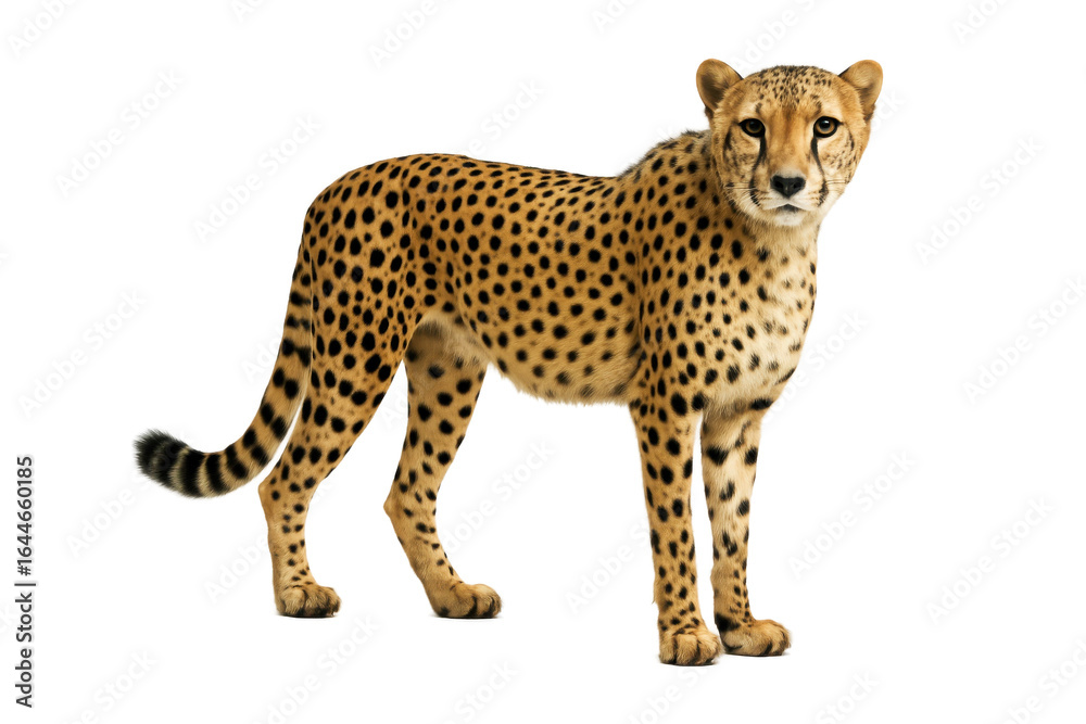 Fototapeta Graceful cheetah standing and looking directly at the camera, showcasing its sle