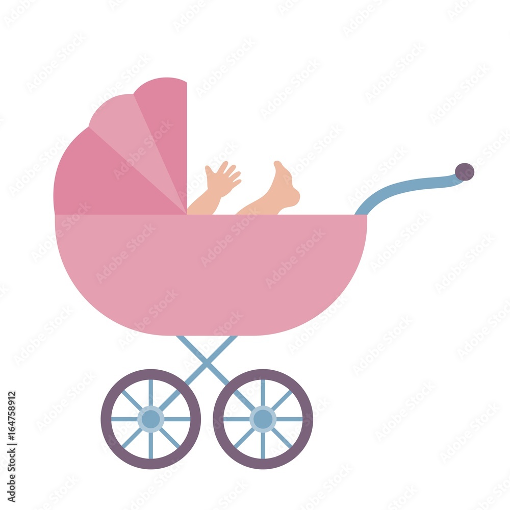 Fototapeta Baby stroller with baby. Colored vector illustration on white