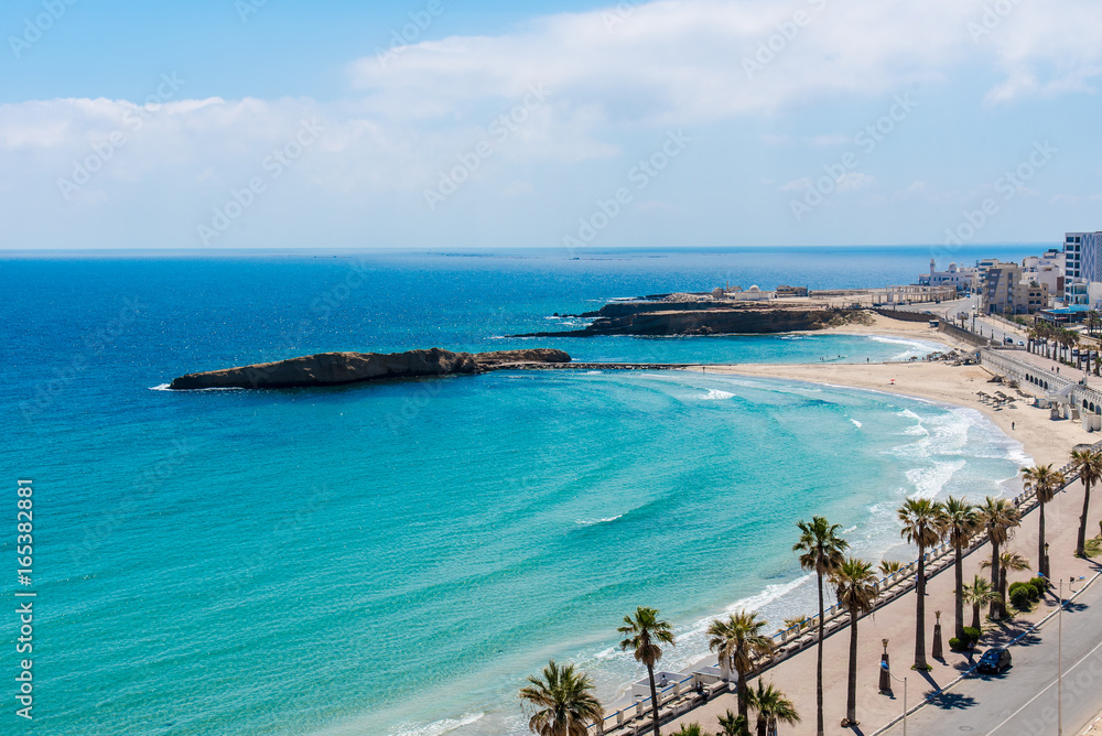 Fototapeta Coast and skyline in Tunisia, Africa