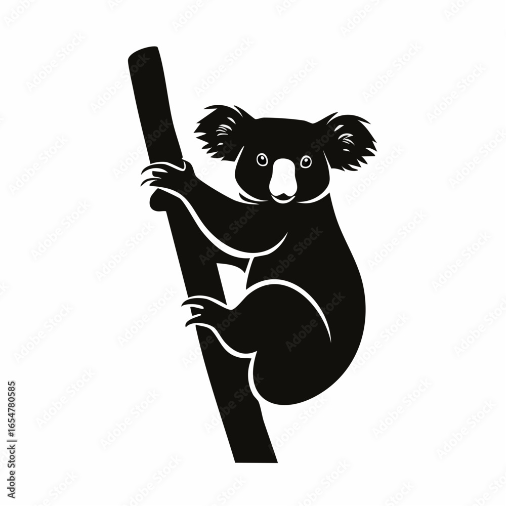 Fototapeta Silhouette of a koala clinging to a tree branch Image vector isolated on white background