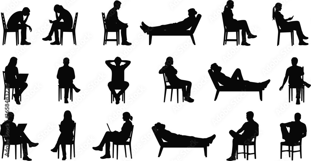 Fototapeta PrintSilhouettes of seated and reclining people in various relaxed poses includi