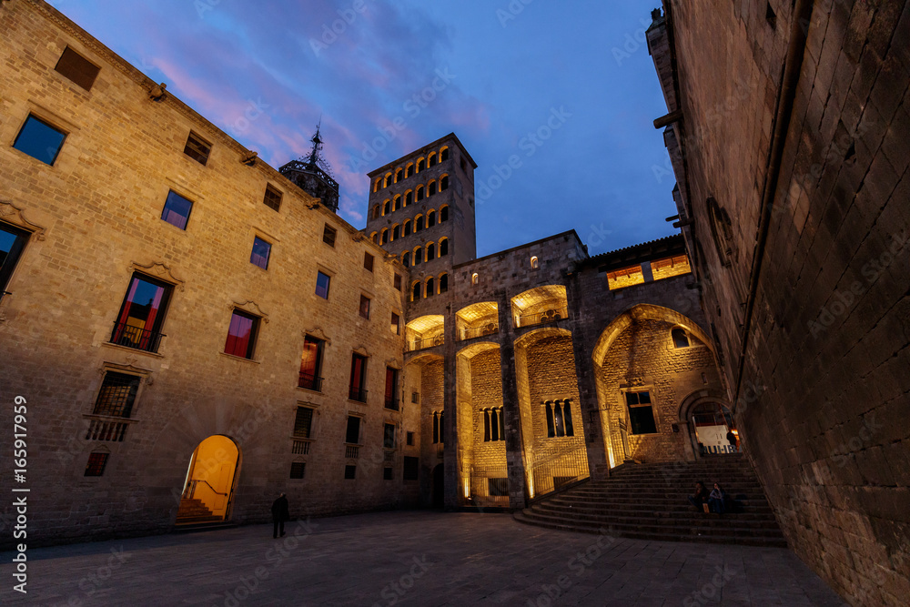Fototapeta Plaza del Rey square at night in the historical center of Barcelona, Spain