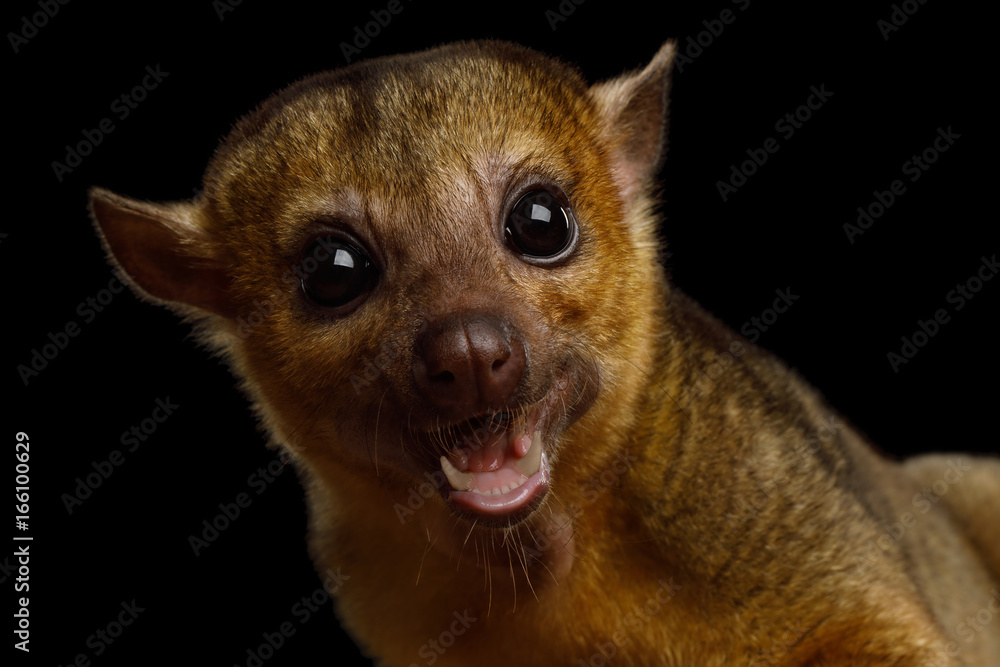 Fototapeta Portrait of Kinkajou, Potos flavus isolated on black background