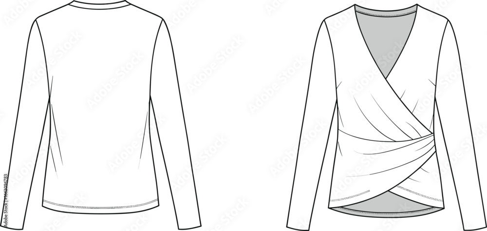 Fototapeta Fashion flat sketch of women’s long sleeve wrap blouse with draped crossover fro