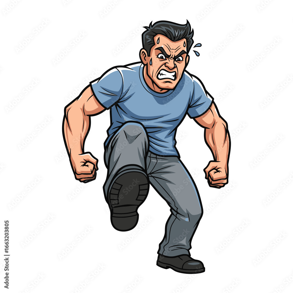 Fototapeta Aggression Unleashed: An intense male figure strides forward with a display of palpable anger, his expression a stark representation of intense fury