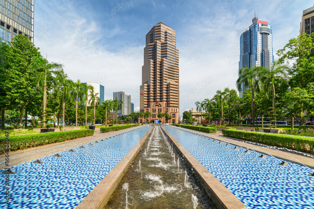 Fototapeta Scenic fountains and Public Bank Berhad building, Kuala Lumpur