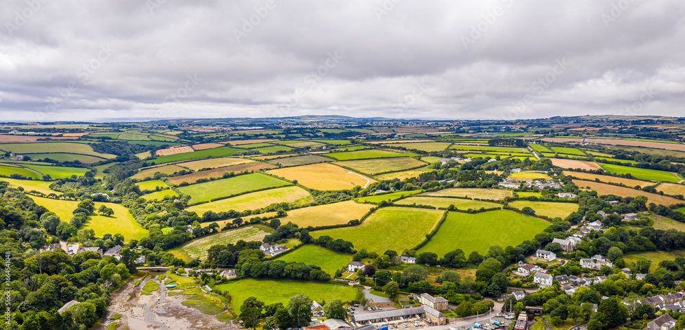 Fototapeta Aerial view of Gweek village with surrounding green fields and countryside