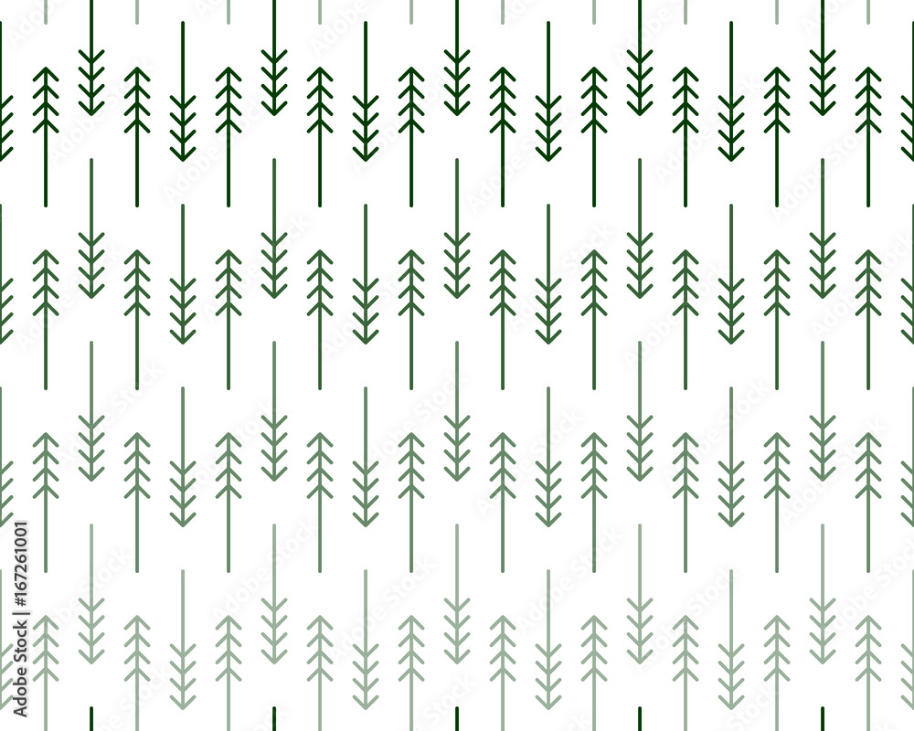 Fototapeta Scandinavian geometric pattern with stylized linear fir and pine trees in shades of green on white background