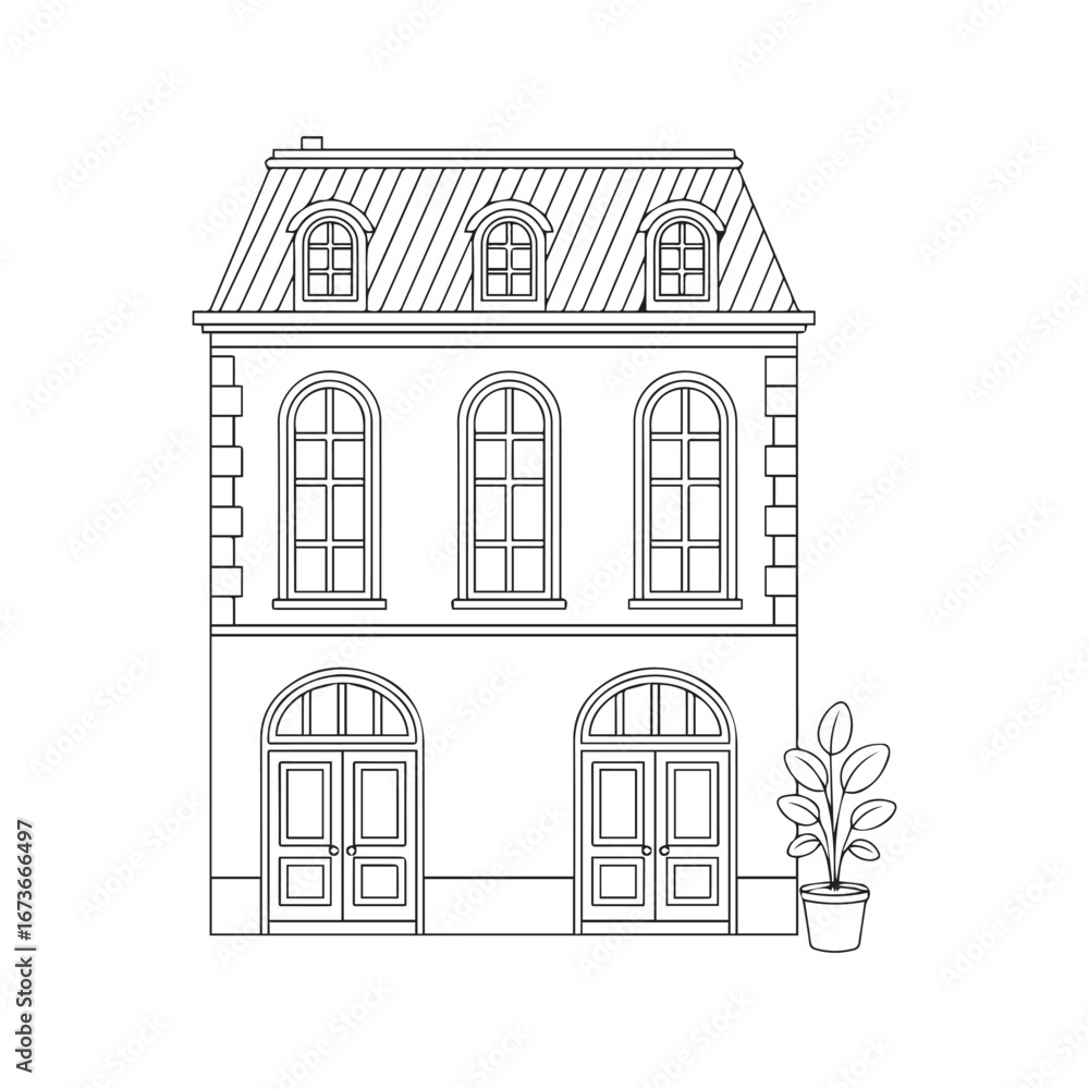 Fototapeta Parisian Apartment Building Facade Line Art