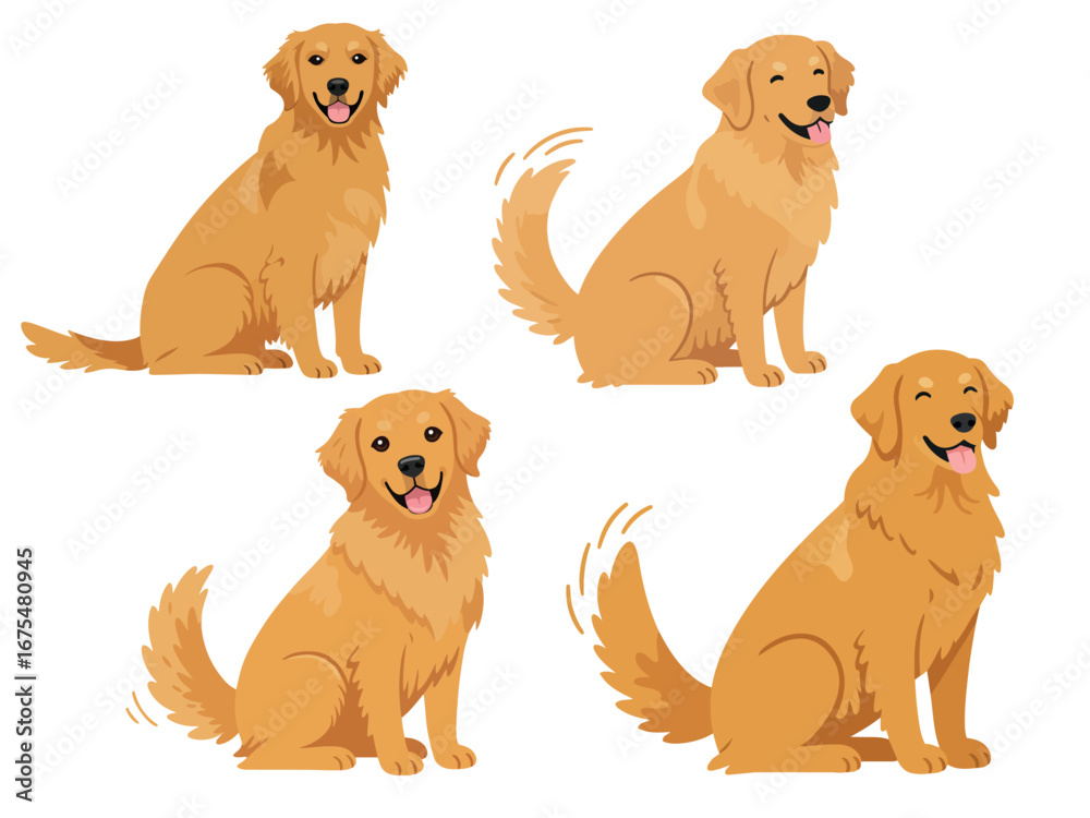 Fototapeta Golden retriever dog sitting happily wagging tail flat vector illustration