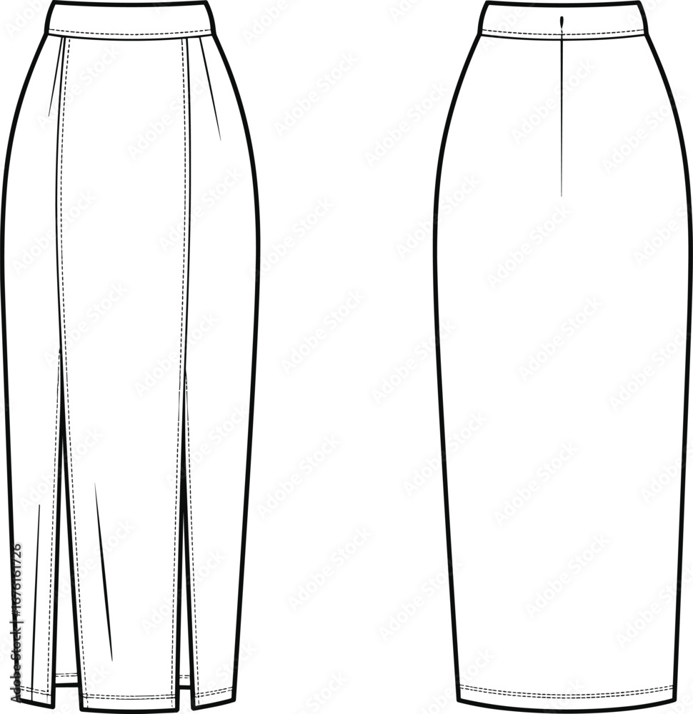 Fototapeta Vector technical fashion flat sketch of high waist pencil skirt with front slit