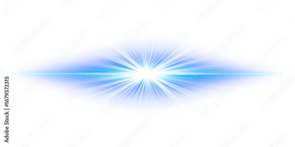 Fototapeta Transparent blue cyan neon glowing light rays beam with radiant shine flare shim