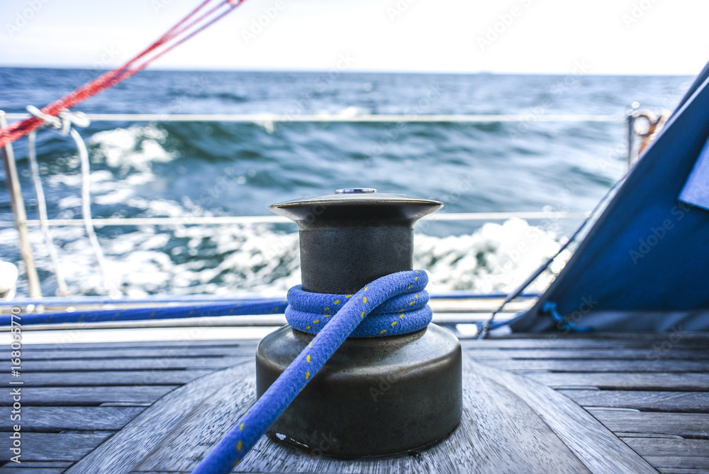 Fototapeta Kabestan with a rope on a yacht, during a cruise on the North Sea