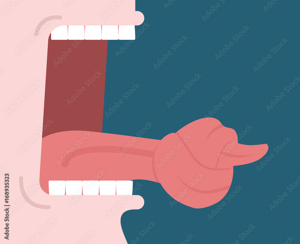 Fototapeta tongue is knot. Open mouth. Silence allegory illustration
