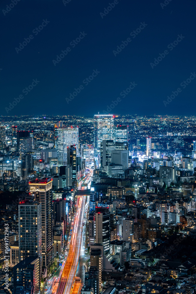 Fototapeta Night cityscape of Tokyo Shinjuku area with high rise buildings at night