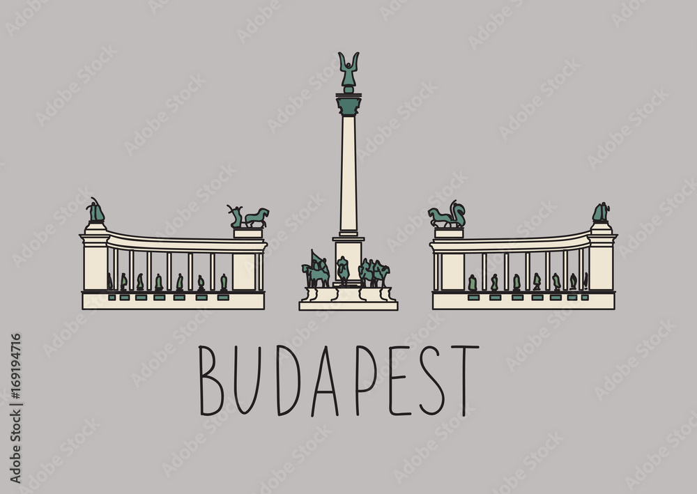 Fototapeta Hand drawing sketch of the Heroes' Square in Budapest, Hungary.
