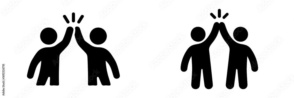 Fototapeta High five icon set with two people celebrating success or agreement, a simple bl