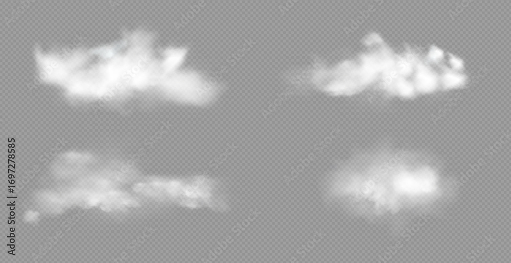 Fototapeta Realistic white fluffy clouds with fog or light smoke effect on a transparent background