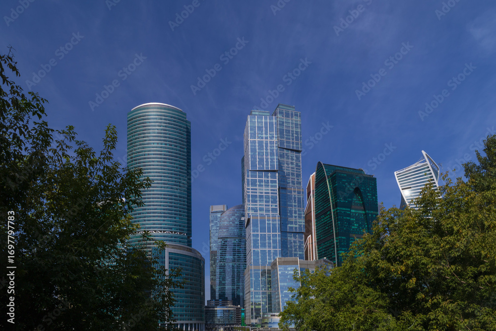 Fototapeta Construction of high-rise buildings, general views of buildings and cranes