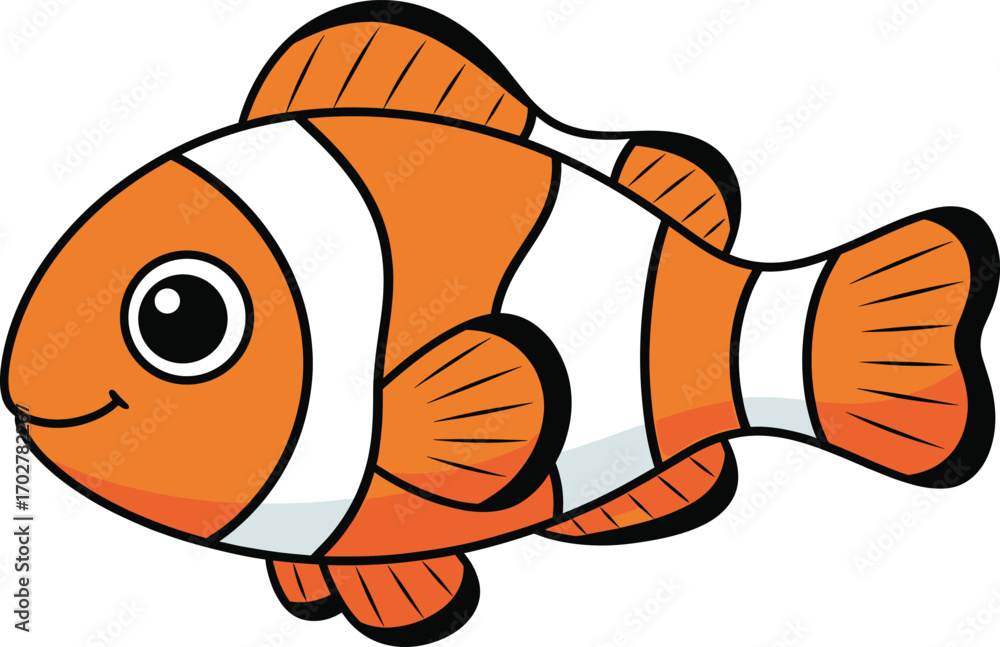 Fototapeta Cartoon clownfish with orange body and white stripes—perfect for marine design, kids’ content, ocean education, and coral reef themes