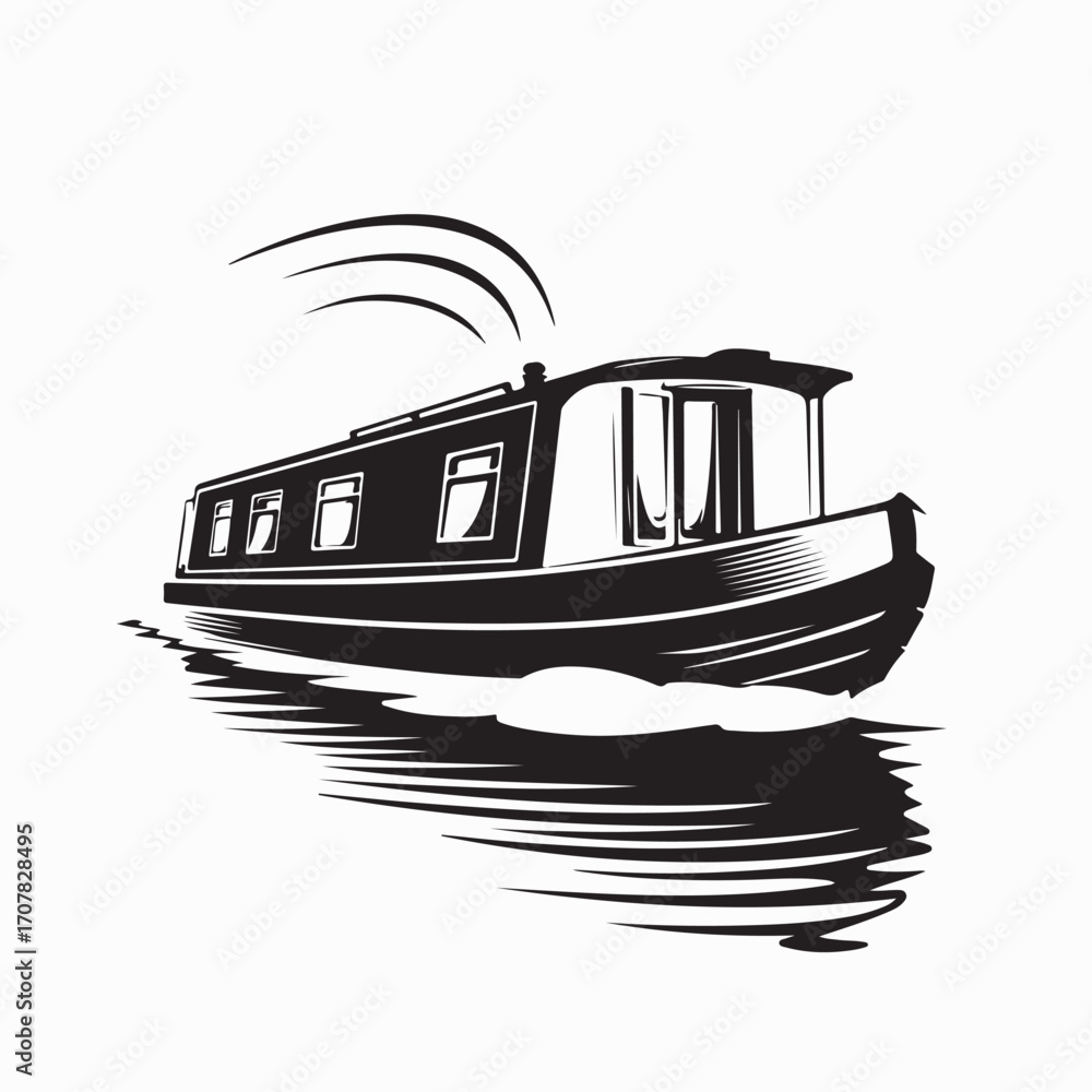 Fototapeta Traditional Narrowboat Illustration Vector Isolated on White Background