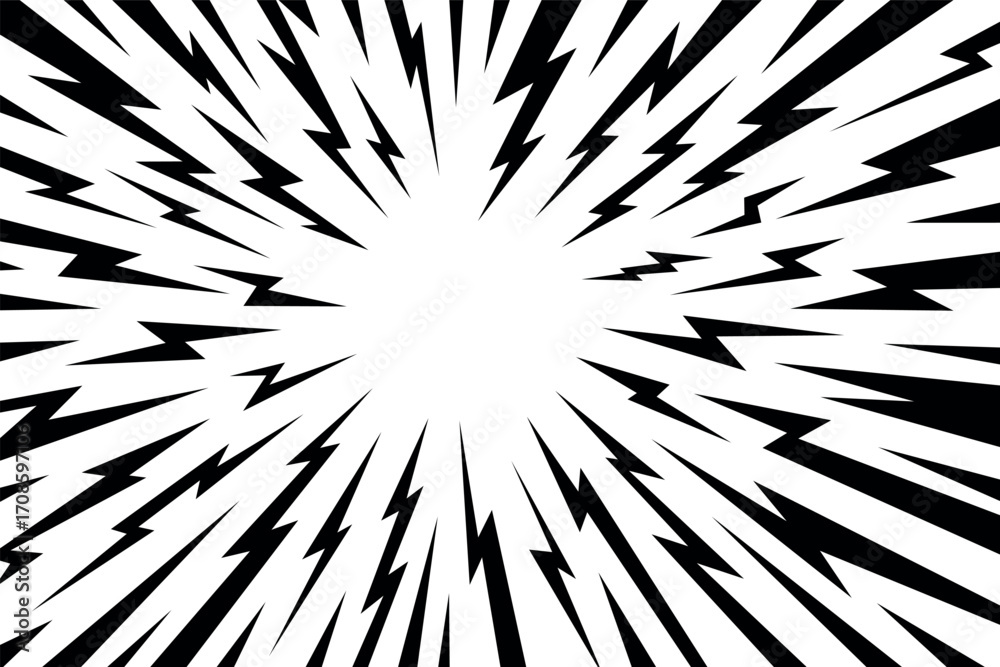 Fototapeta Manga thunder background builds anime comic line flashes in radial perspective