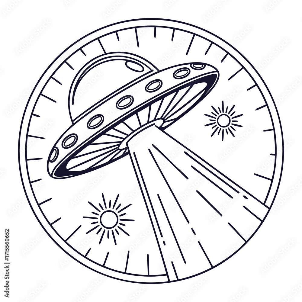 Fototapeta Stylized line art illustration of a classic flying saucer ufo emitting a beam of