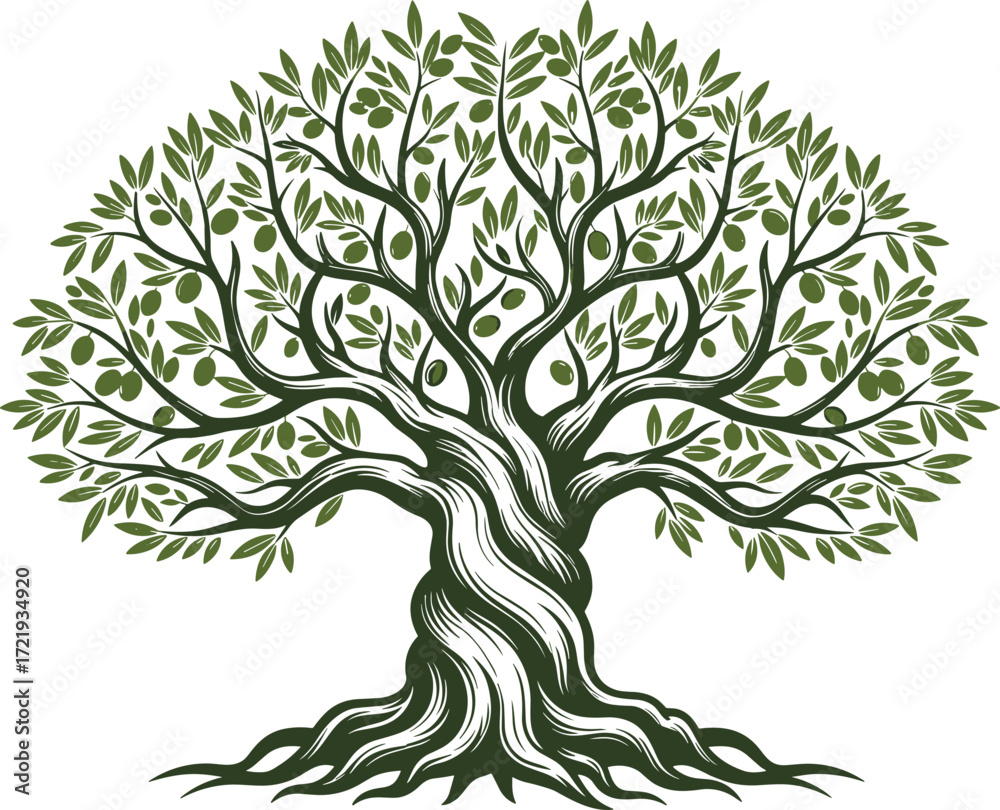Fototapeta Stylized tree illustration, twisted trunk design, green leaf canopy, nature symb