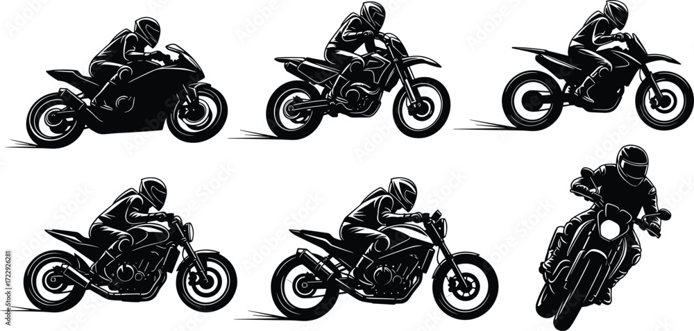 Fototapeta Motorcycle rider silhouette set, sport bike, motocross, dirt bike, street racing