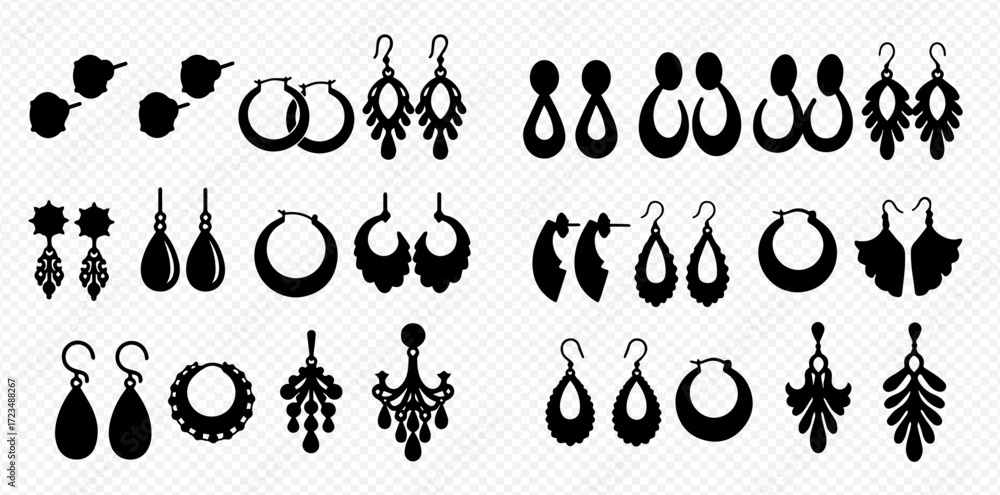 Fototapeta An assortment of earring silhouettes in various shapes and styles, displayed in rows on a transparent background