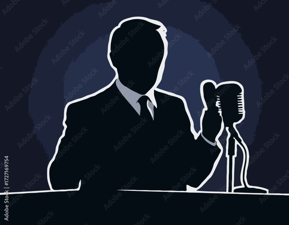 Fototapeta silhouette of the politician before a microphone bundile vector