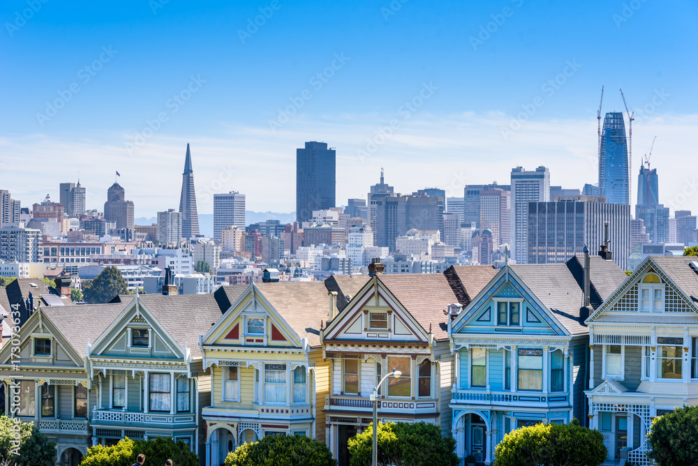 Fototapeta Beautiful view of Painted Ladies, colorful Victorian houses located near scenic