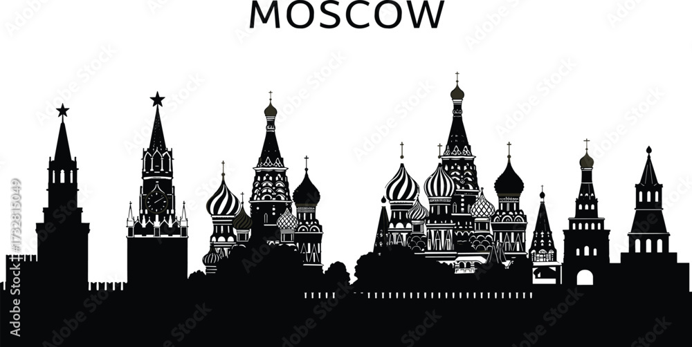 Fototapeta Moscow skyline vector silhouette with Kremlin towers, Saint Basil’s Cathedral do