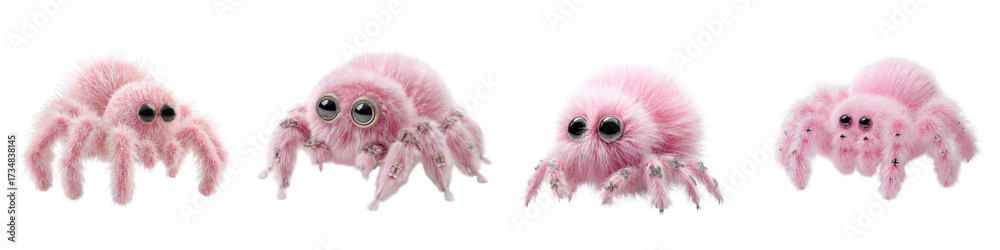 Fototapeta Adorable Pink Jumping Spiders, Cute and Fluffy Arachnids for Children's Content,