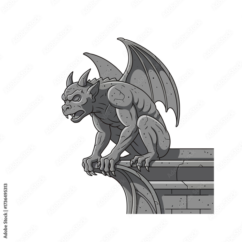Fototapeta Sinister Medieval Stone Gargoyle Perched on Ancient Gothic Architecture, a Fears