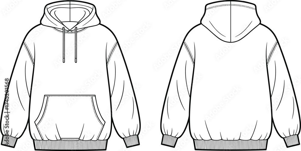 Fototapeta CAD drawing flat vector illustration, hoodie sweatshirt design, fashion sketch,