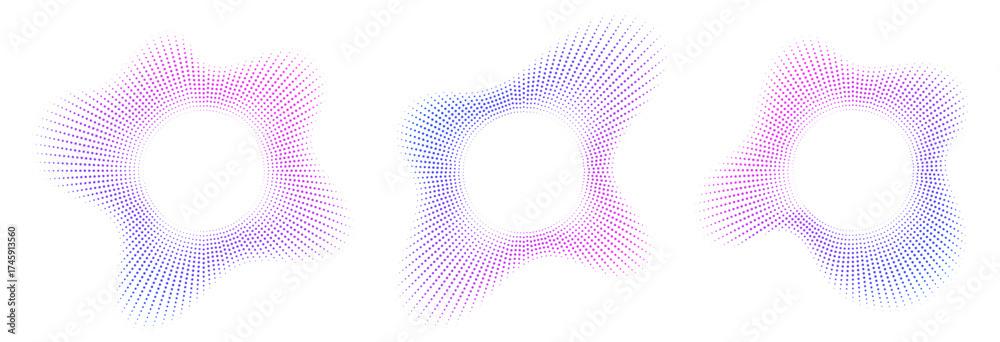 Fototapeta Sound equalizer icons with lines and dots, gradient neon circular sound wave frames, abstract radial music icons
