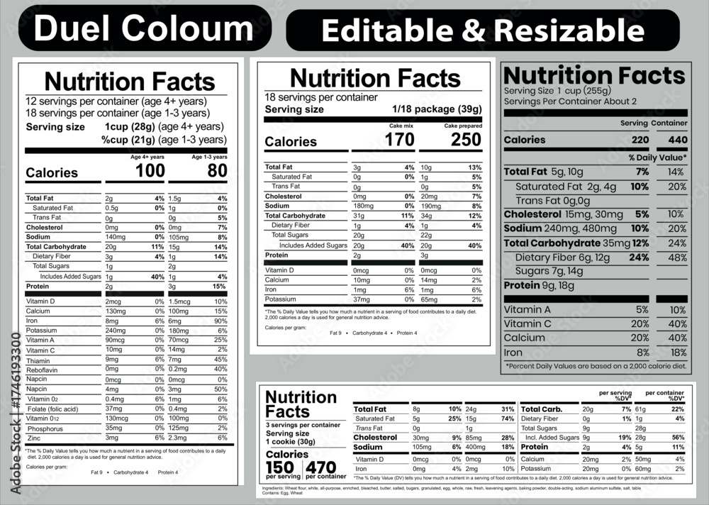 Fototapeta Dual Column Nutrition Facts Label , Editable FDA and UK FSA Compliant Food Packa