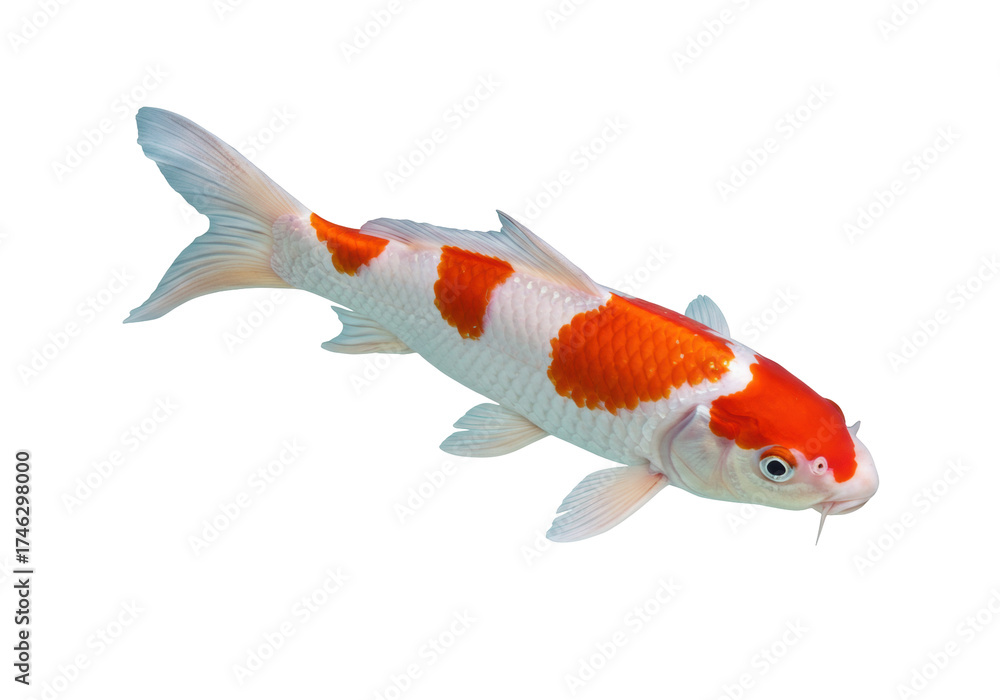 Fototapeta Kohaku Koi fish isolated PNG, white and orange carp swimming on transparent back